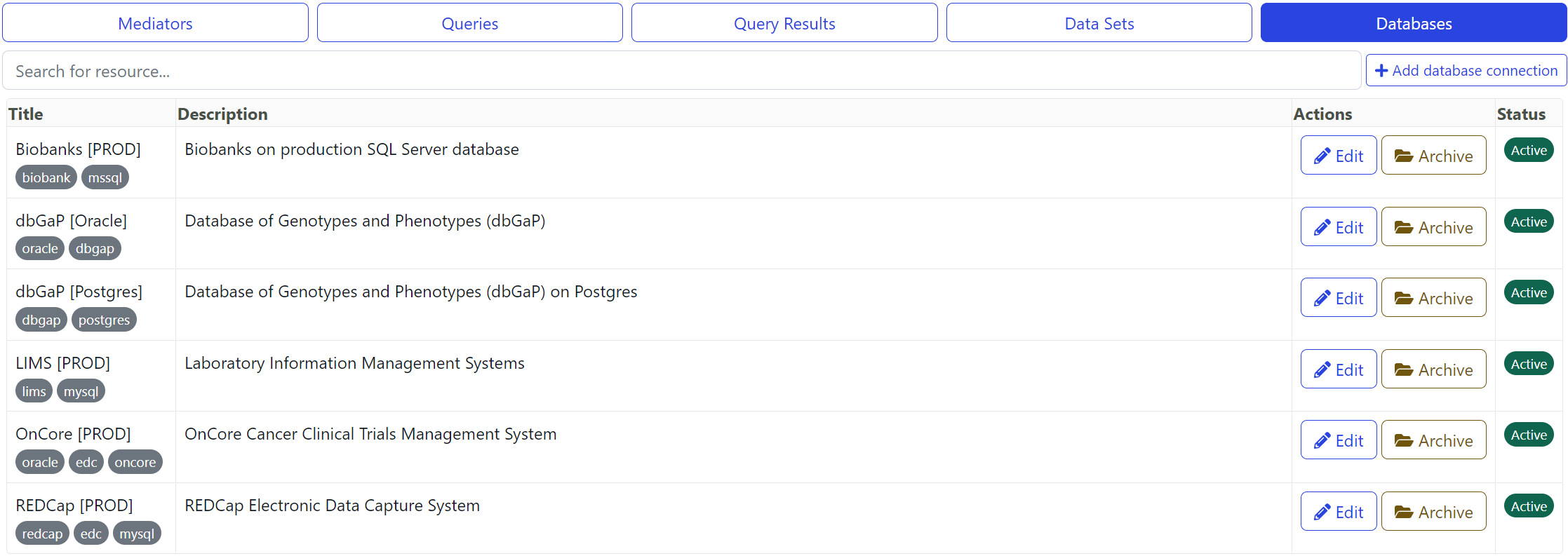 | Description | Description of the database connection. | |