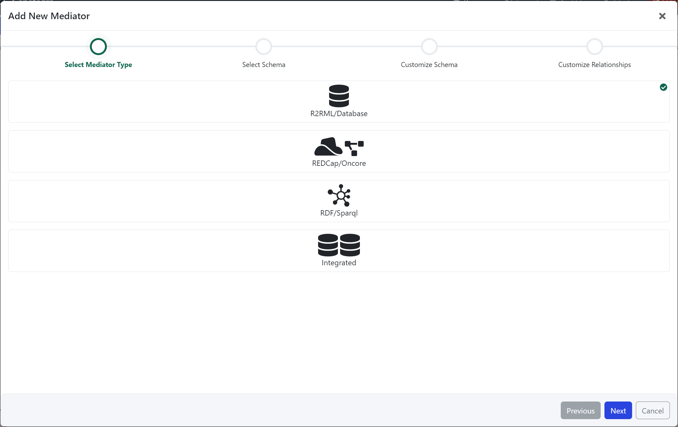 The Add New Mediator Wizard guides you through the process of configuring different Mediator types.