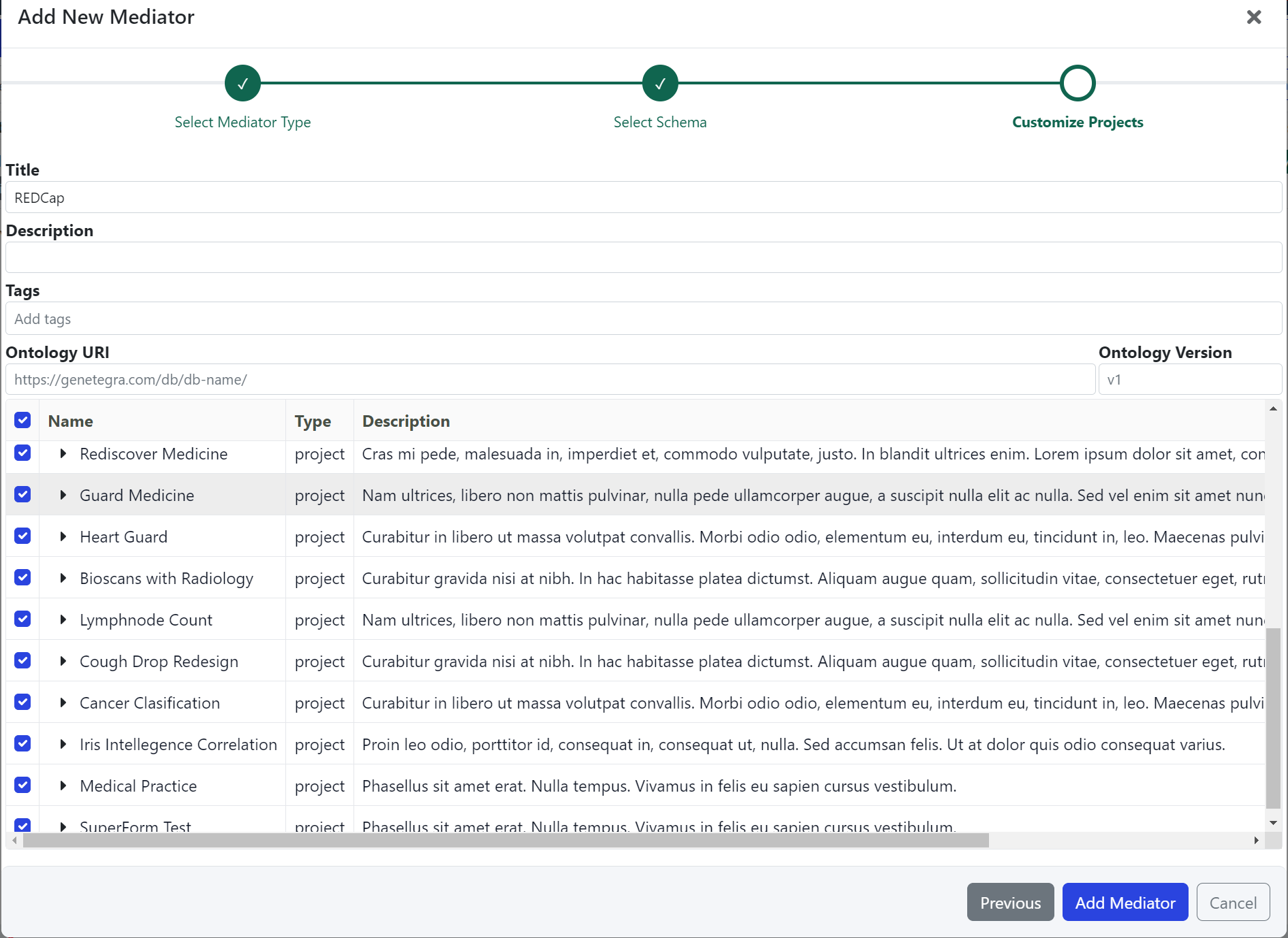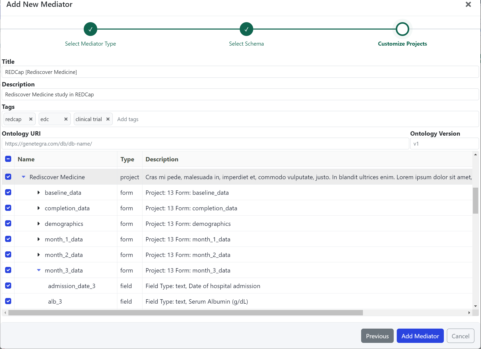 GeneTegra checks to see if the selected schema has the correct structure for an EDC Mediator before proceeding.