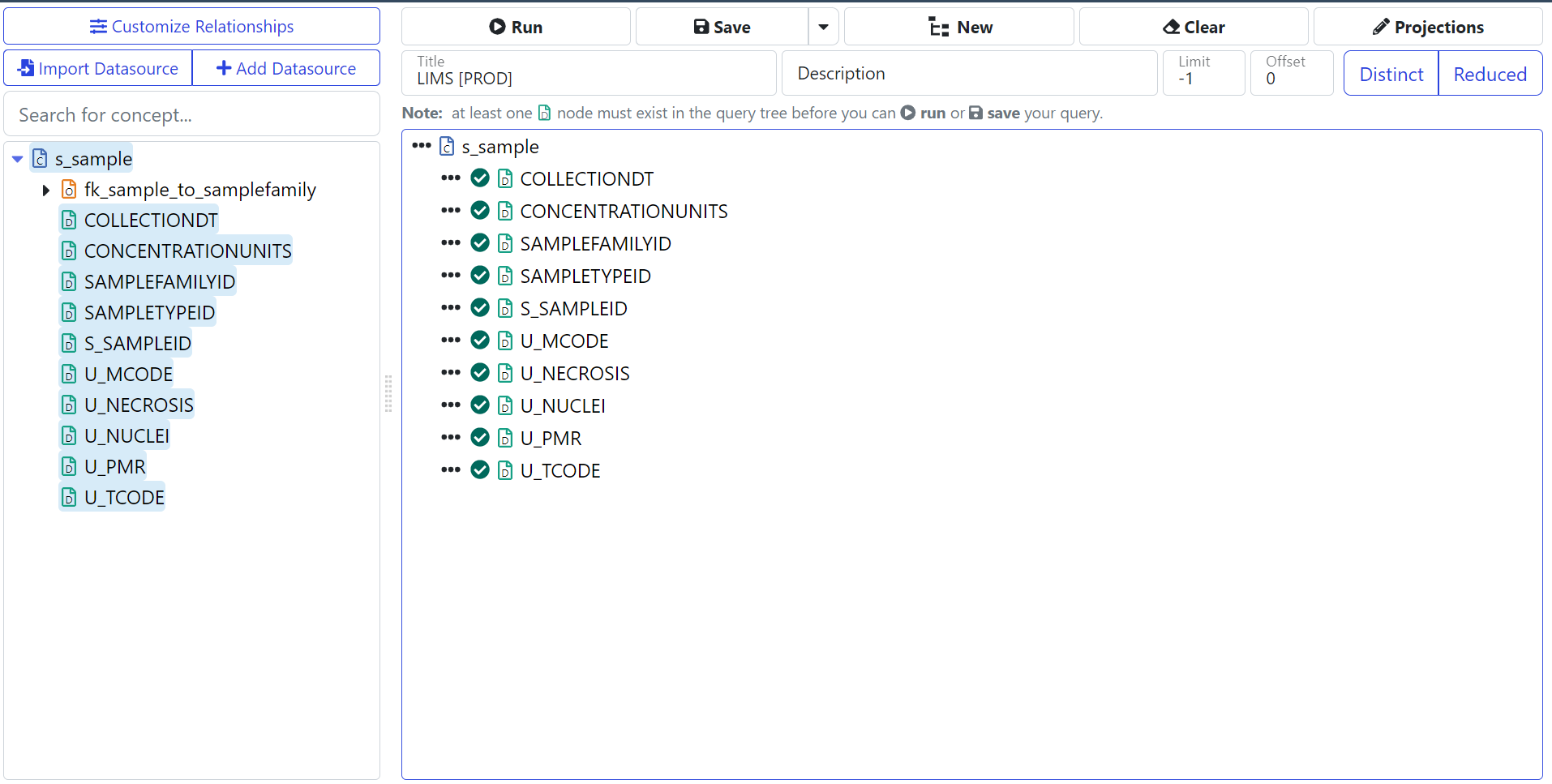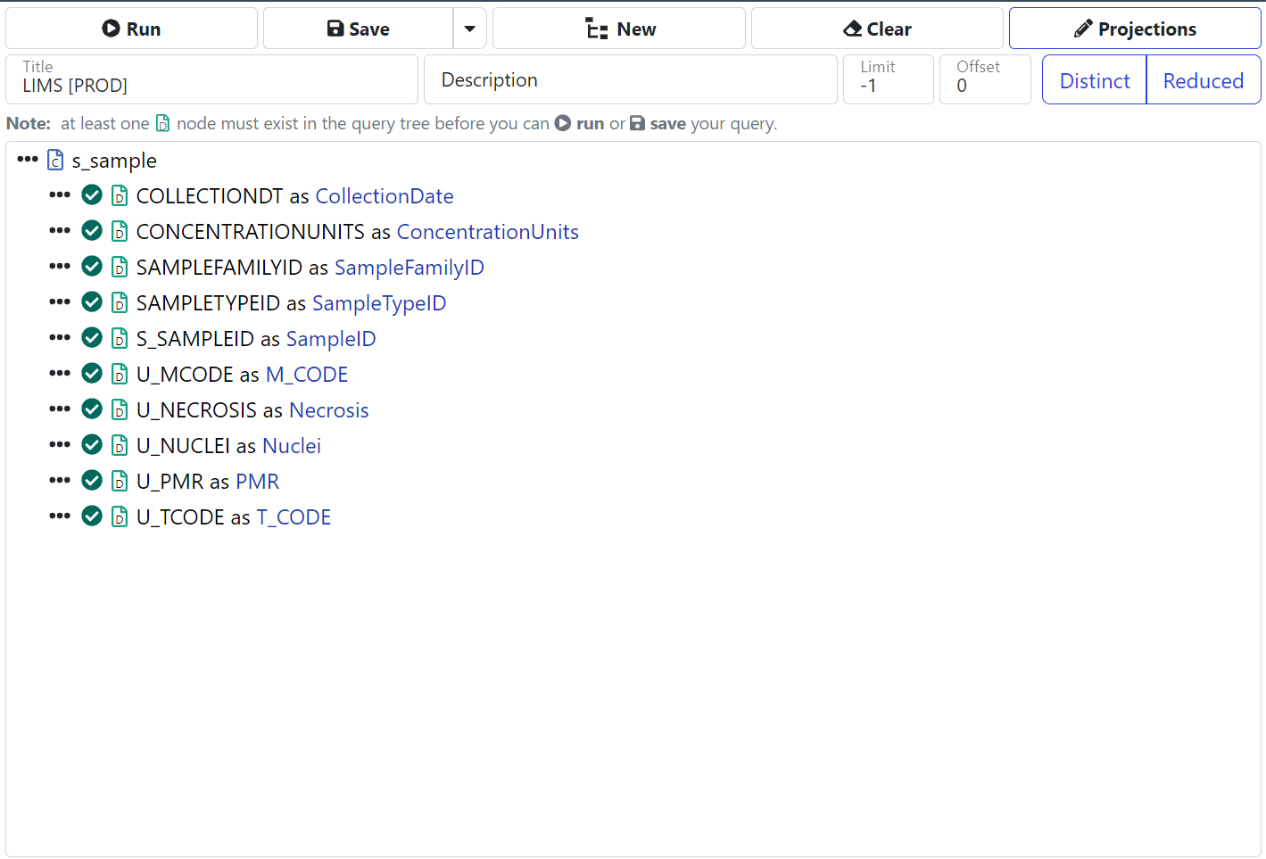 LIMS s_sample Query: Before Editing Projections