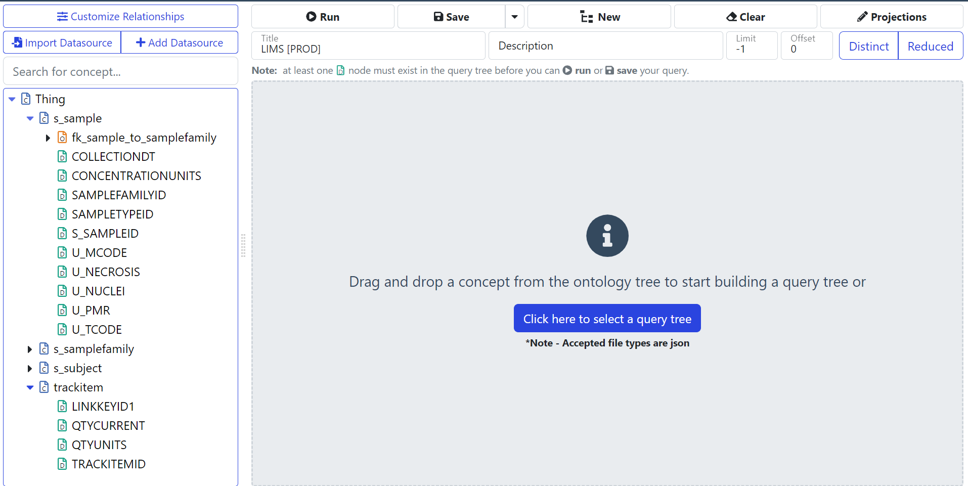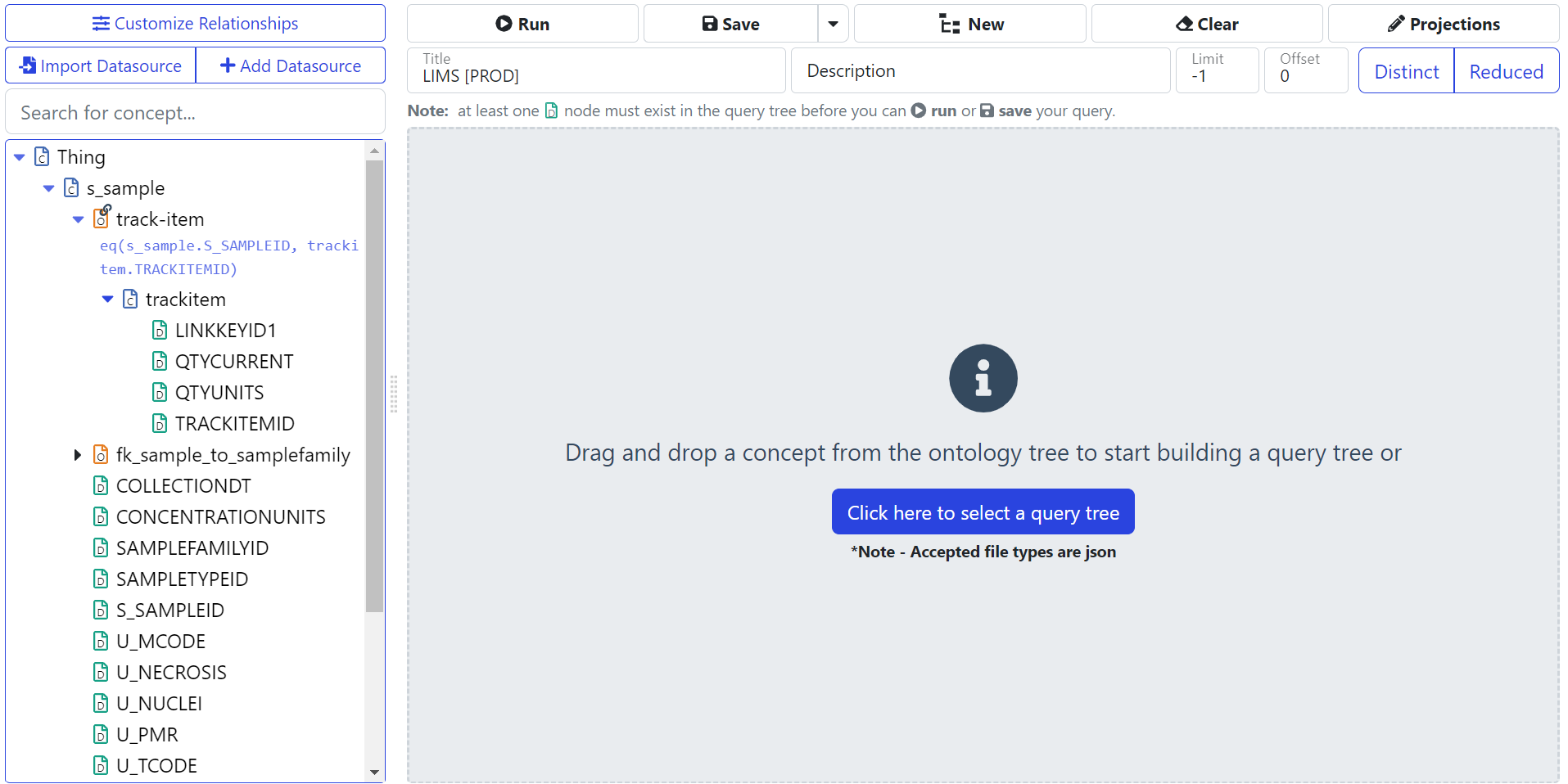 - When a Query is created, defining query-level Object Property relationships betwen any two Classes in the Mediator or between a Class and a Data Set in the Query.